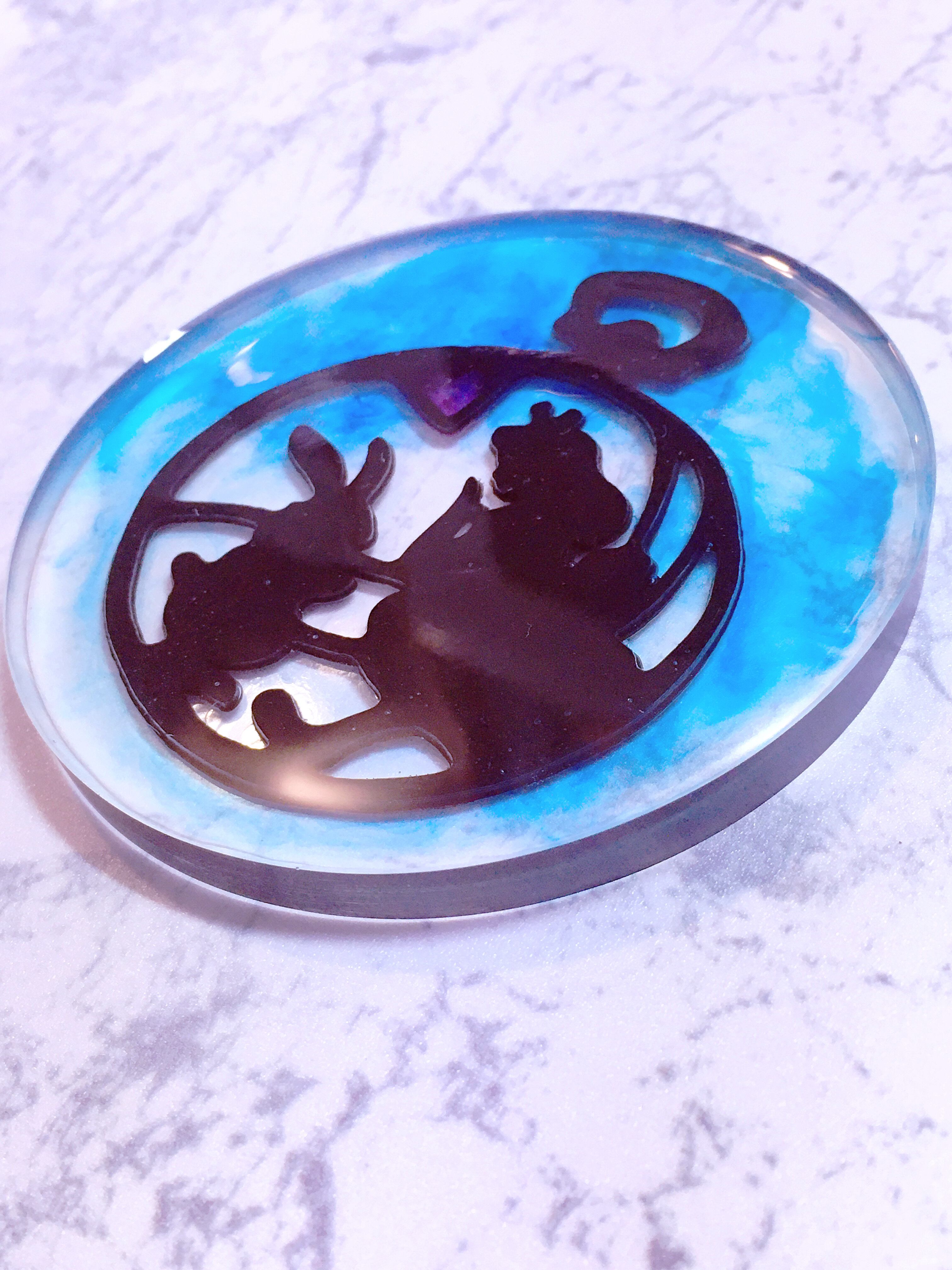 3Dデータとしてデザイン・デフォルメしたアリスをクリスタルレジンで固めて出来たコースターになります。
