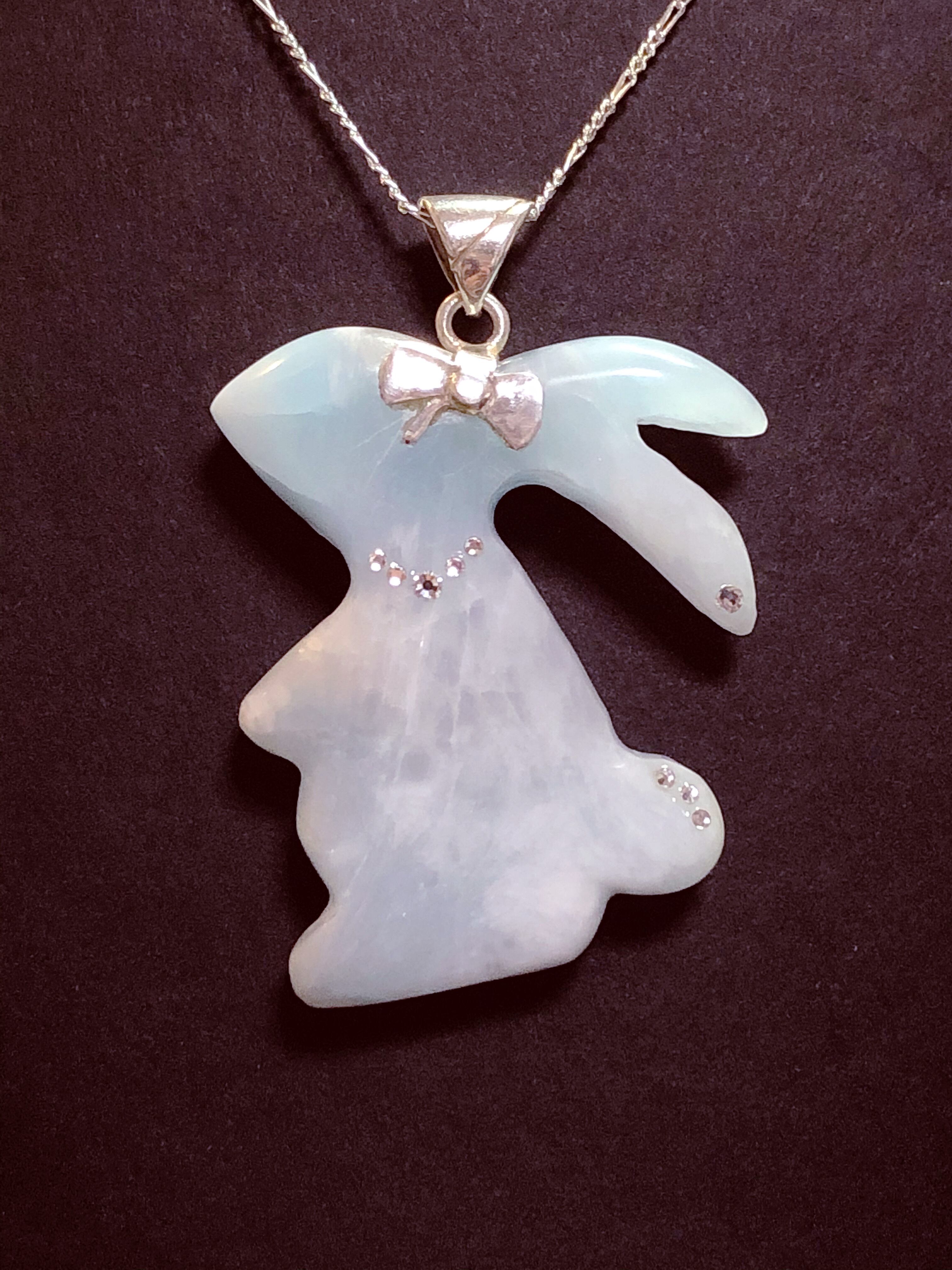 希少なアイスラリマーを多く含んだ、ラビットカットのネックレスになります。