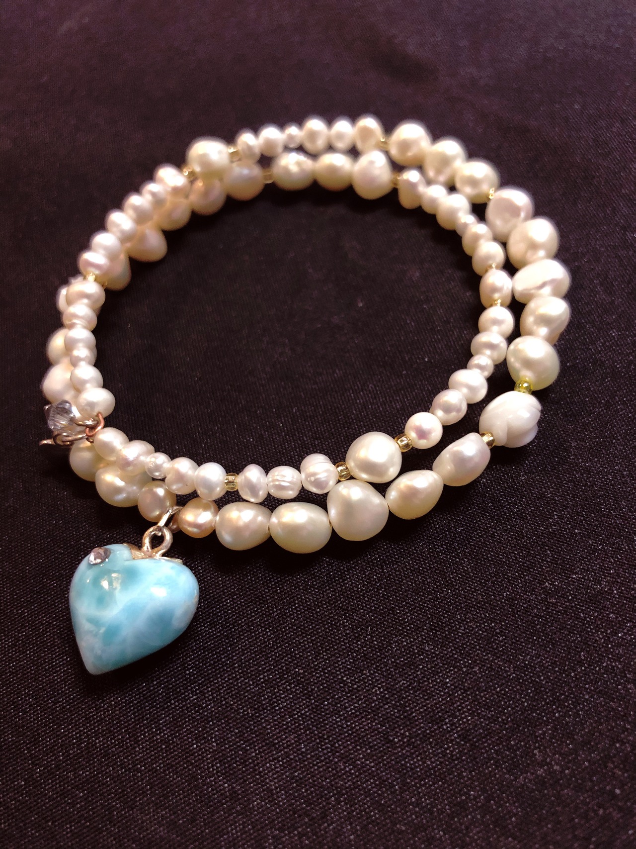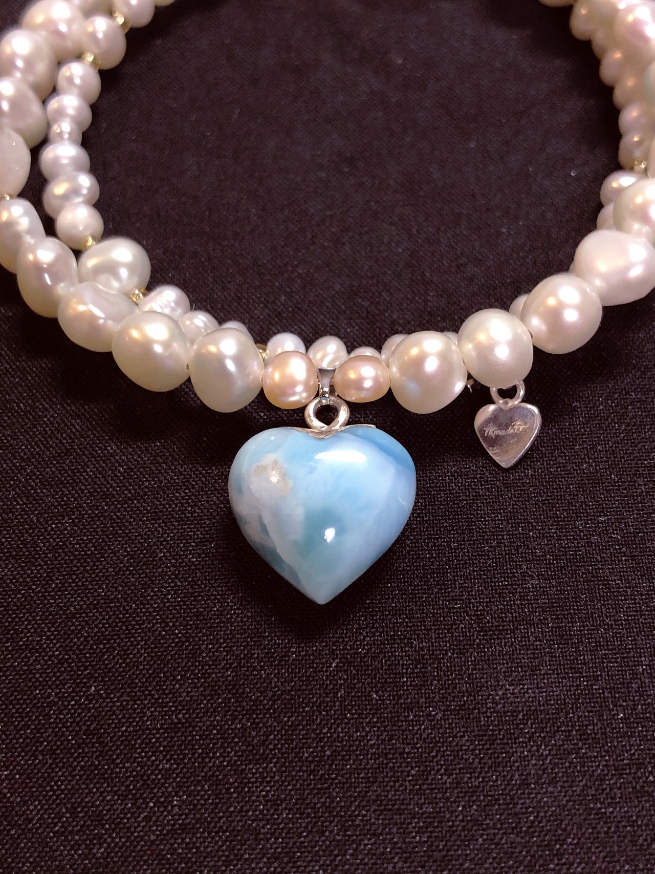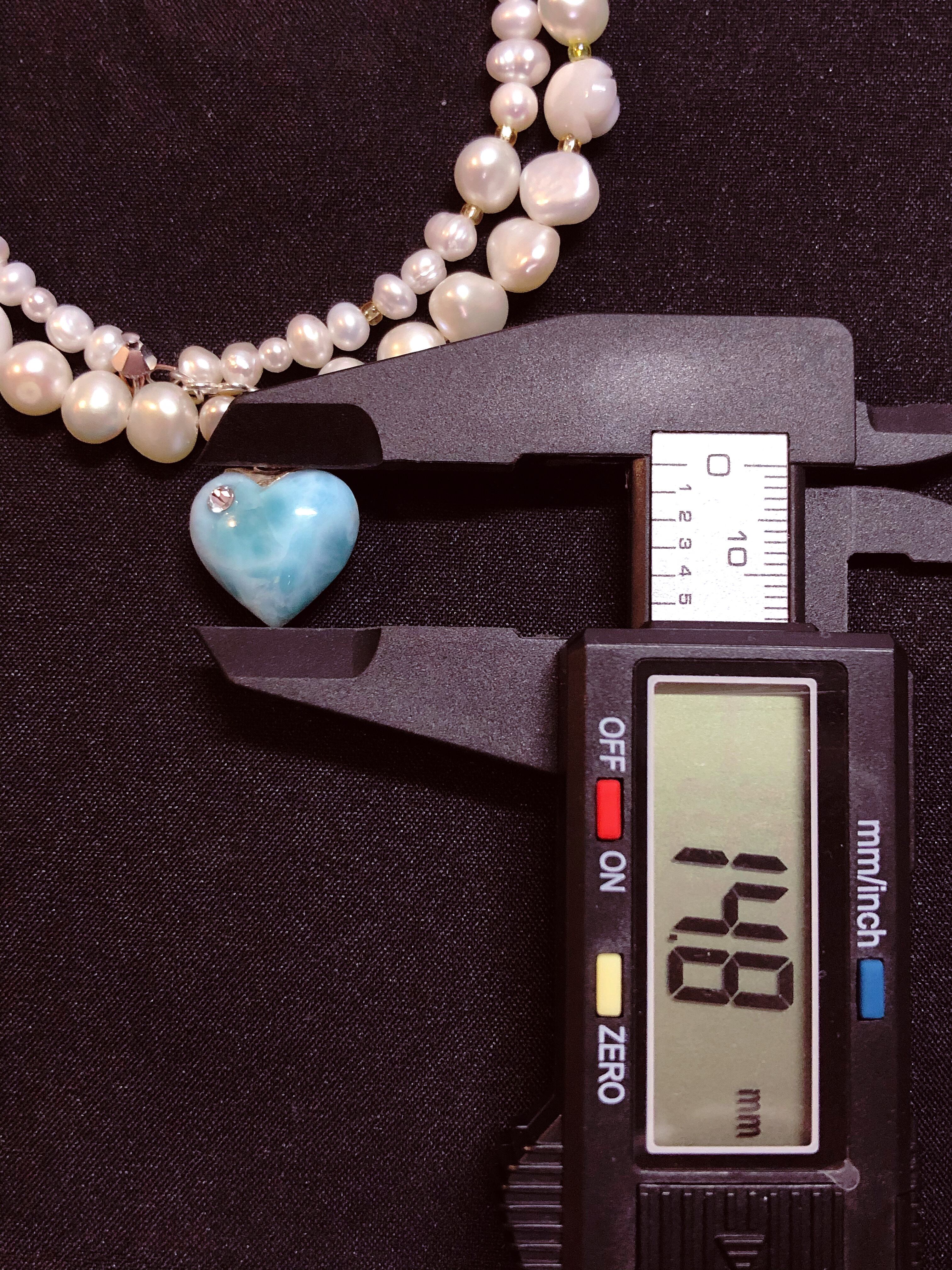 淡水パールをふんだんに使用し、ハートラリマーもトップに組み合わせながら1粒1粒丁寧に組み上げた天然石チョーカーになります。