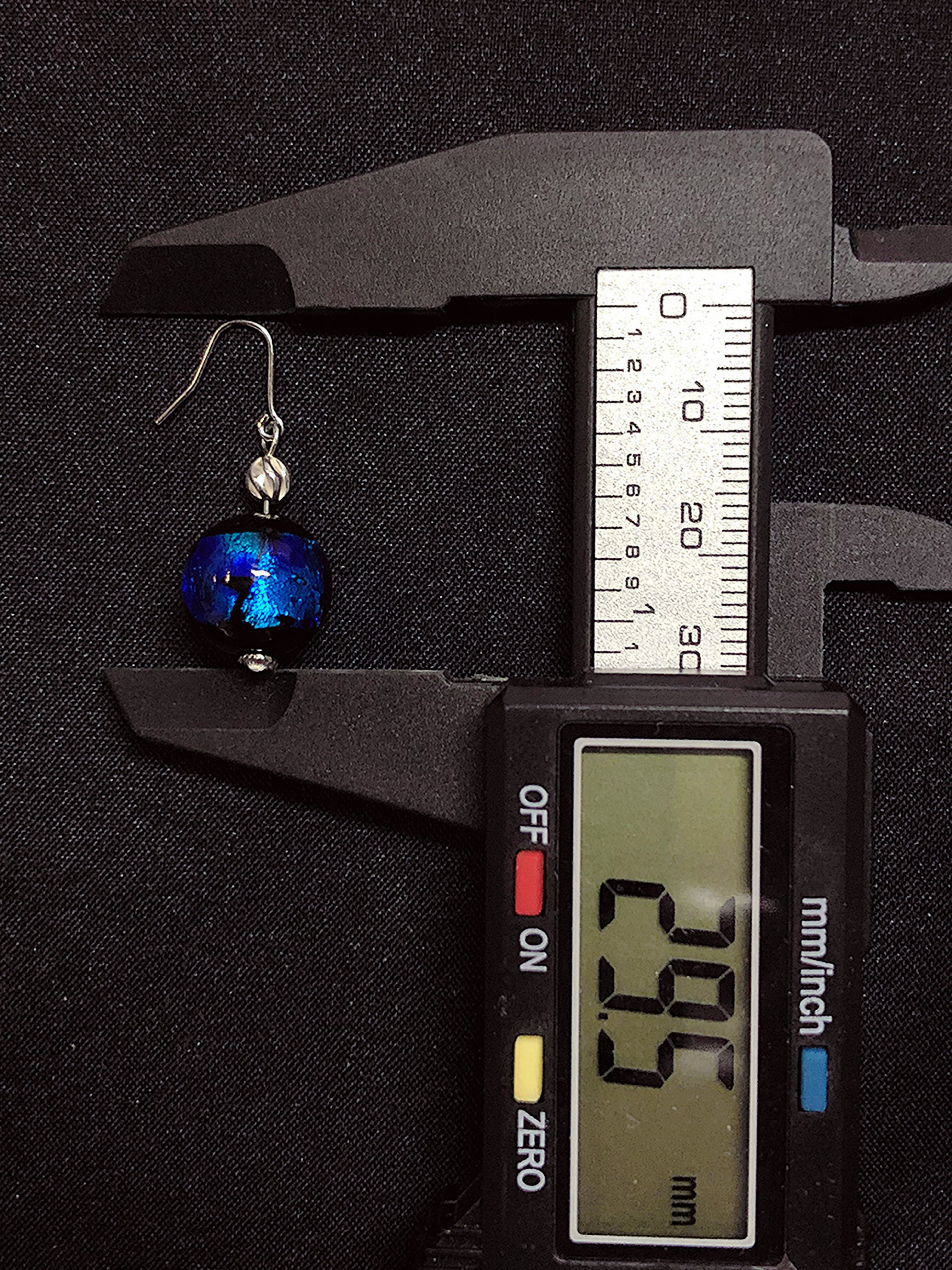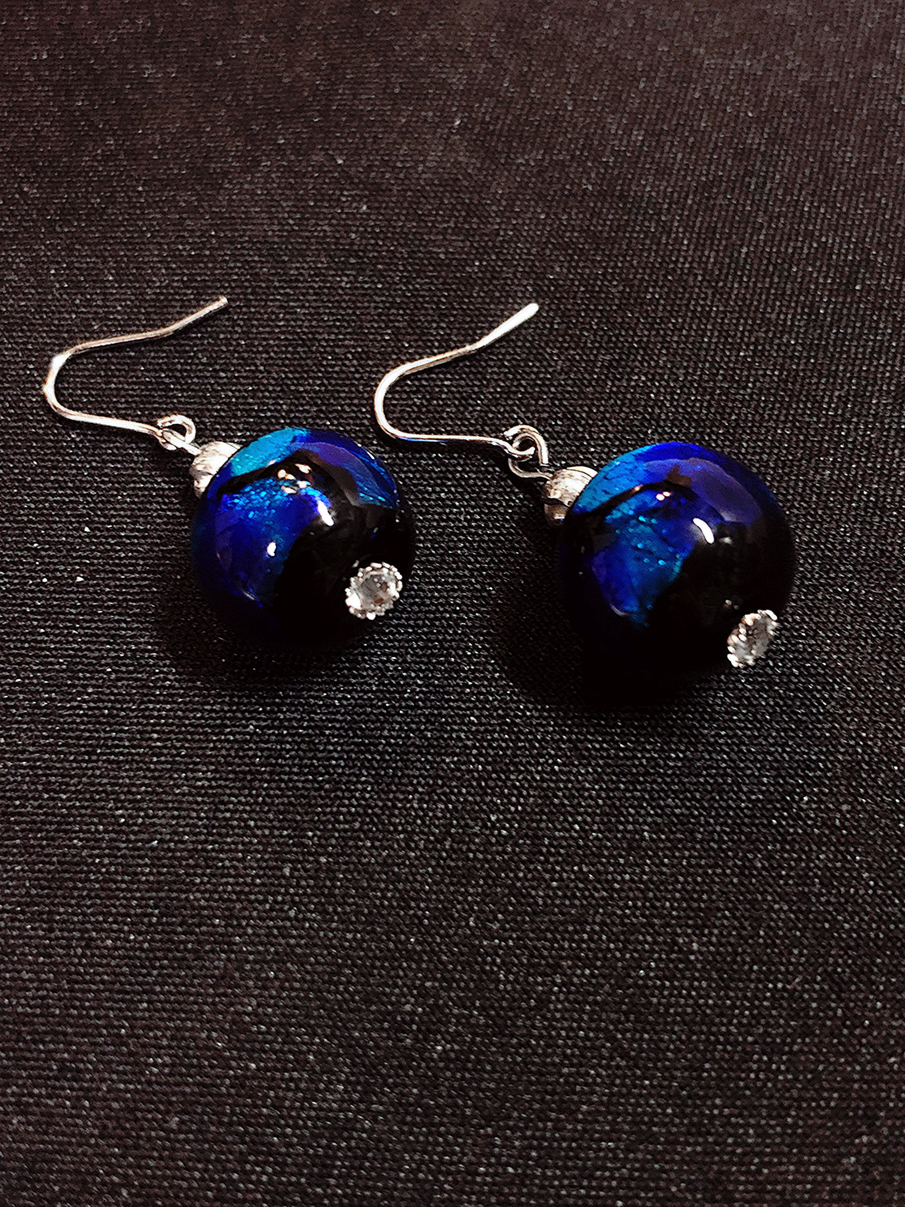 深い青色と黒色が織りなす綺麗な色味が沖縄の海を連想させ、バーナーワークと呼ばれる成形技法を用いて作られた穴のあいたガラス玉です。