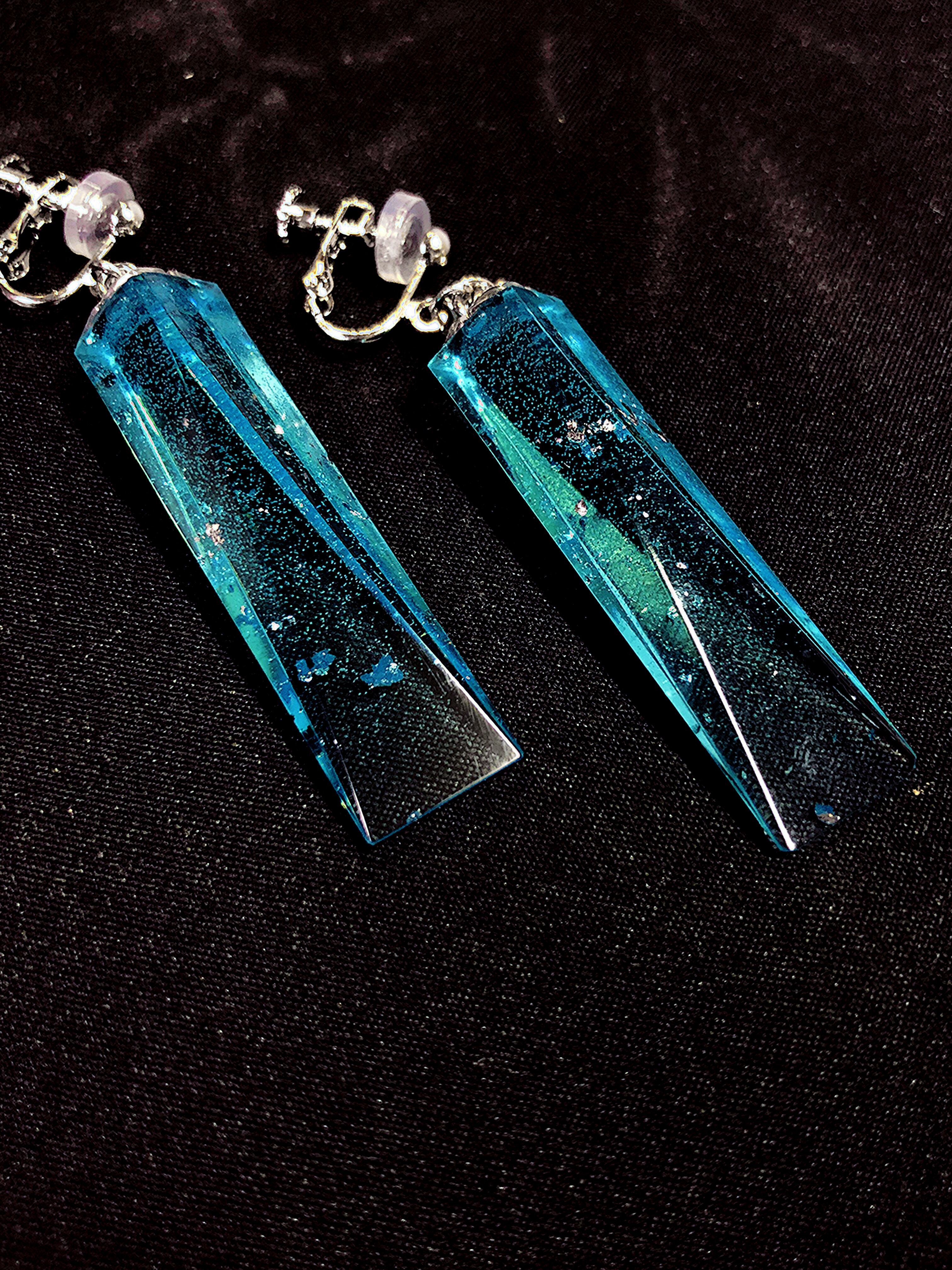 水色の調色と銀箔を合わせた、透き通る爽やかさのあるオリジナルアクセサリーです。