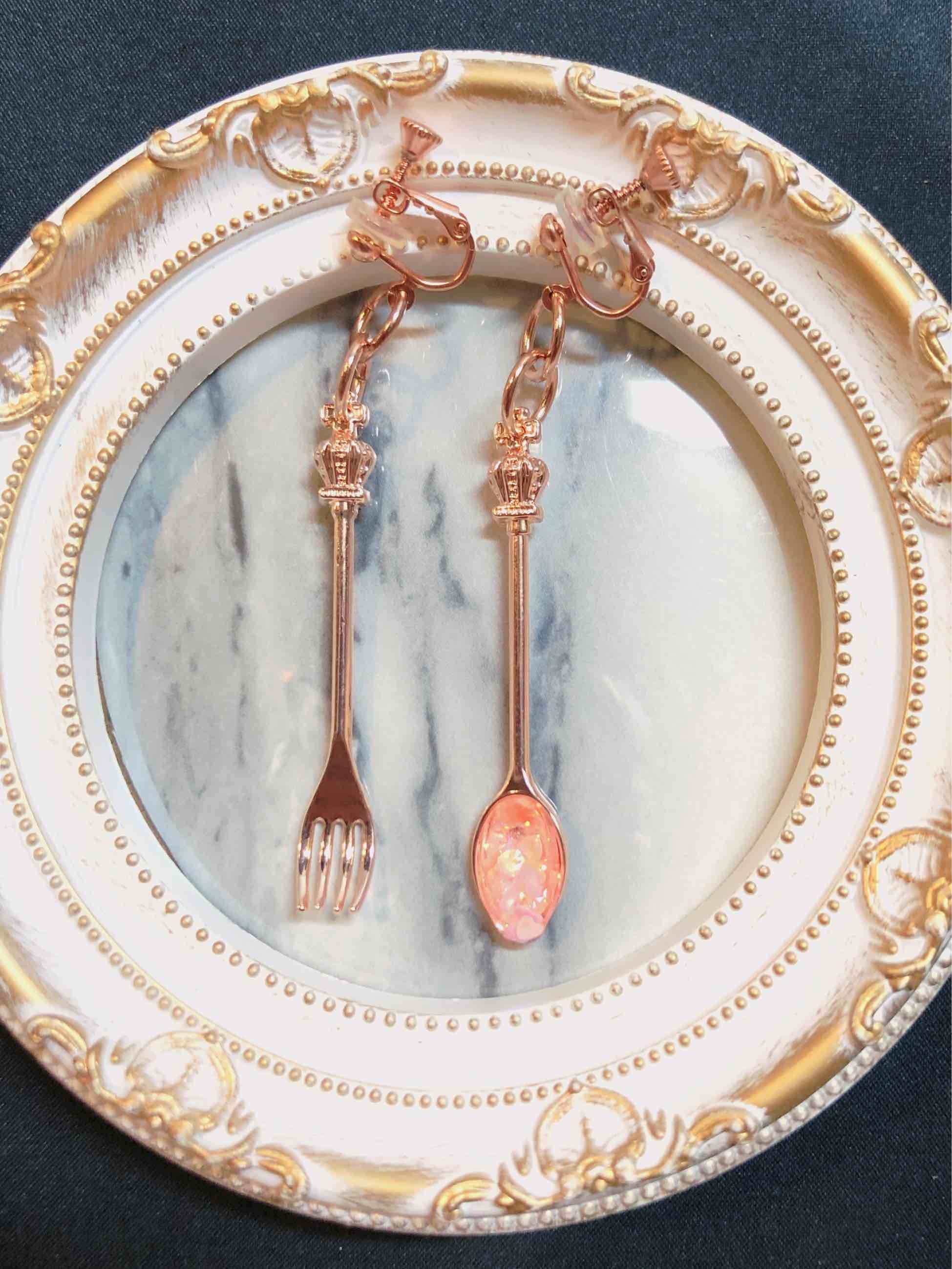 ピンクゴールドのカトラリーをモチーフにしたオリジナルアクセサリーになります。